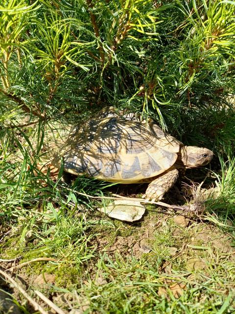 So langsam werden die Tage wieder kürzer. Die Sonne steht nicht mehr ganz so hoch und die Schatten im Schildkrötengehege werden länger. Die Aktivitäten lassen Mitte August so ganz langsam nach. Jetzt ist auch die Zeit, im Gehege die Pflanzenpracht etwas zurückzuschneiden um den Tieren mehr Sonnenplätze zur Thermoregulierung anzubieten. Aber auch Baby-Schildkröten rennen bei dem einen oder anderen im August durch das Gehege!