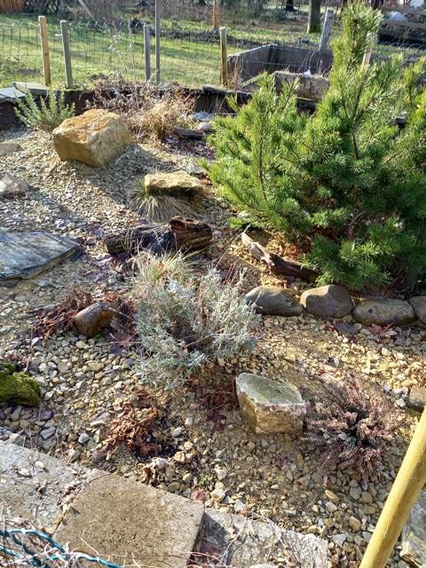 Diese Reste habe ich jetzt im Februar entfernt. Gleich mit auf den Komposthaufen wurden die restlichen abgestorbenen Äste bzw. Pflanzen entsorgt.