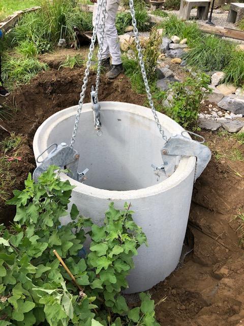 Beim Setzen des Schachts haben wir die Tiefe so gewählt, dass bei Starkregen das Haus immer über dem Wasserpegel steht.