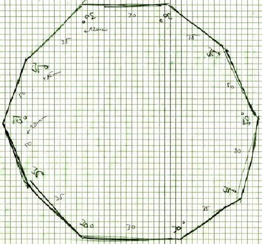 Ich habe mit einer Kartonschablone begonnen um einen ersten Eindruck der Dimensionen zu erhalten. Daraus konnte ich auch die unterschiedlichen Winkel ableiten und den Holzverschnitt gering halten. Hier noch wichtig zu erwähnen: Ich habe mich für Eiche entschieden, weil das Holz sehr witterungsbeständig und schön anzusehen ist.