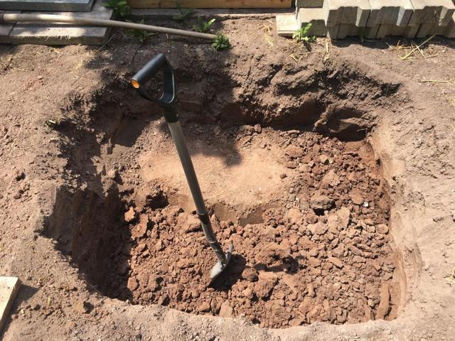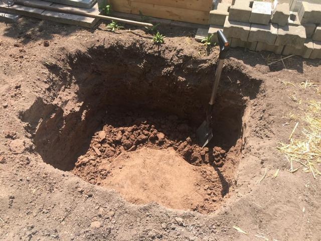 Als erstes wurde das Loch für die Grube von Hand ausgehoben.