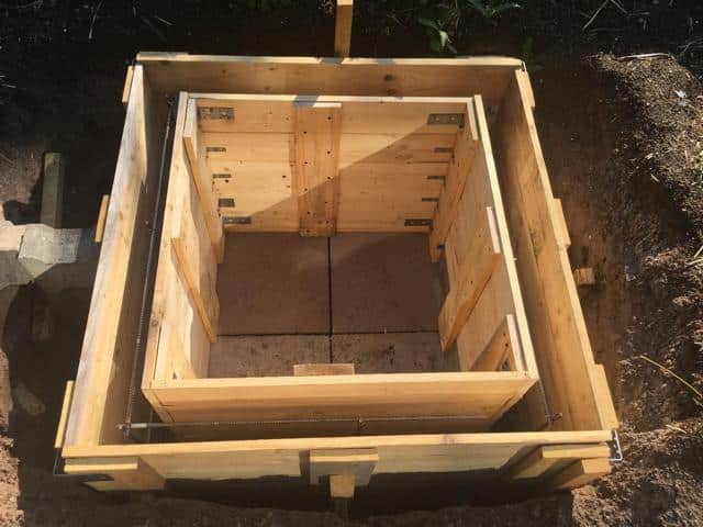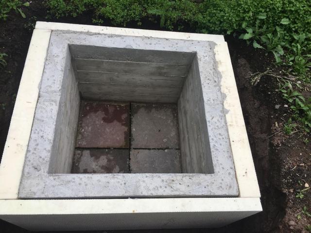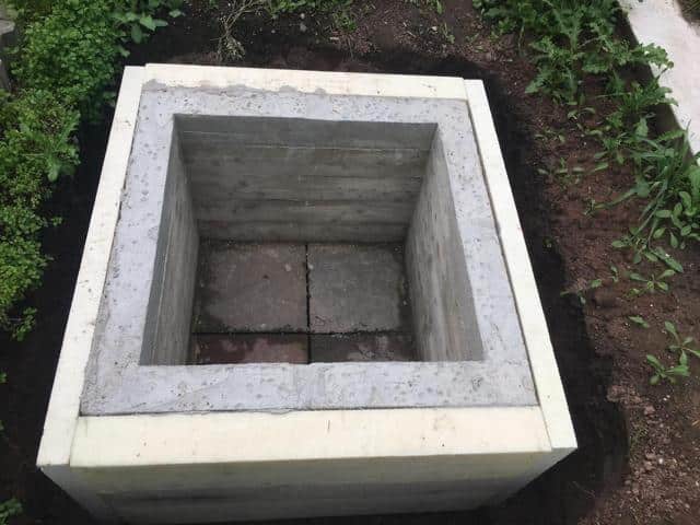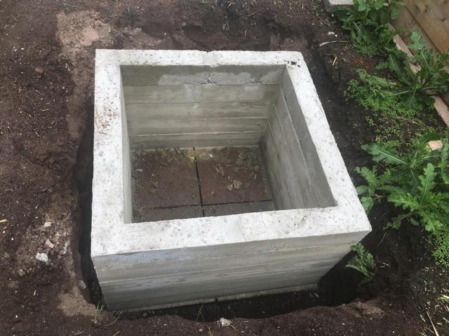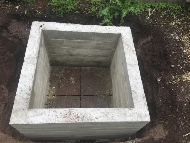 Und als der Tag endlich gekommen war kam die Schalung ab und das Ergebnis seht ihr hier: die fertige „Betonhülle“ für die Grube.