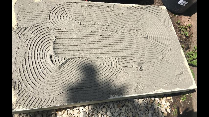 Als nächster Schritt wurde die Dämmung mit speziellem „Gewebe abgespachtelt“. Heißt spezielles Gewebe wurde mittels einer dünnen Schicht Gewebespachtelmasse auf die Dämmung aufgebracht damit die Dämmung geschützt ist und nicht reißt.