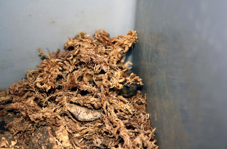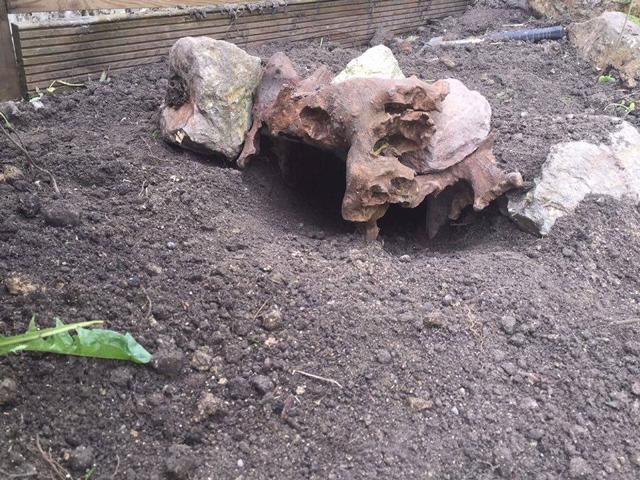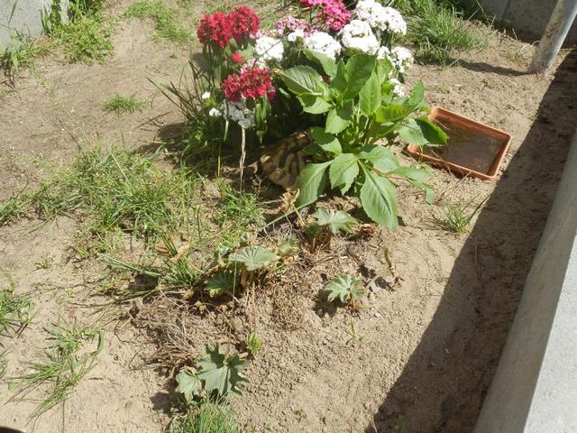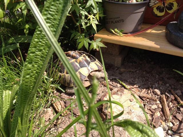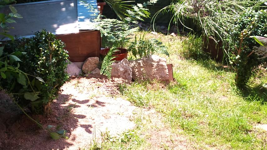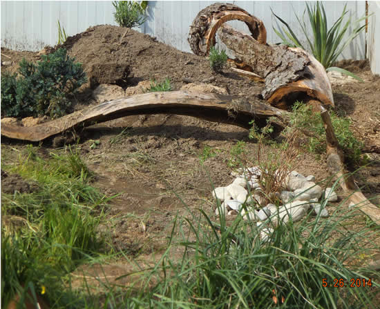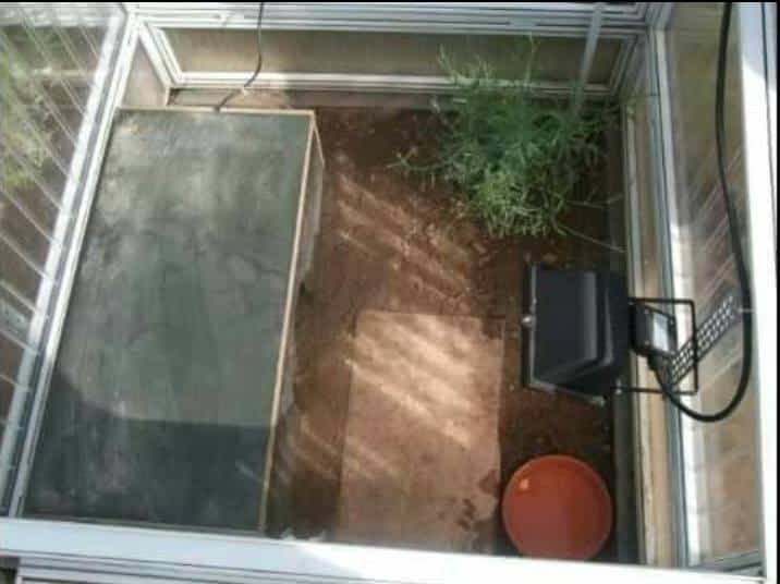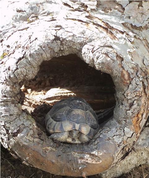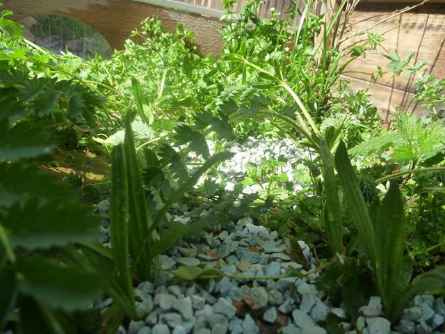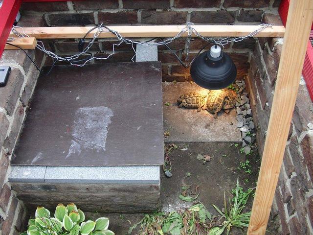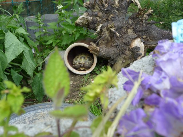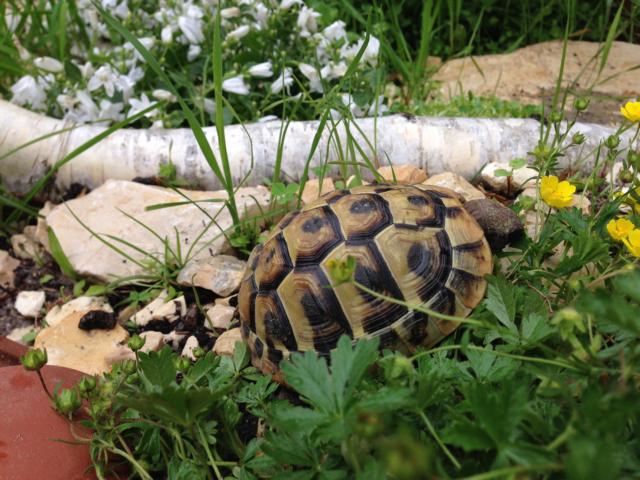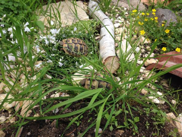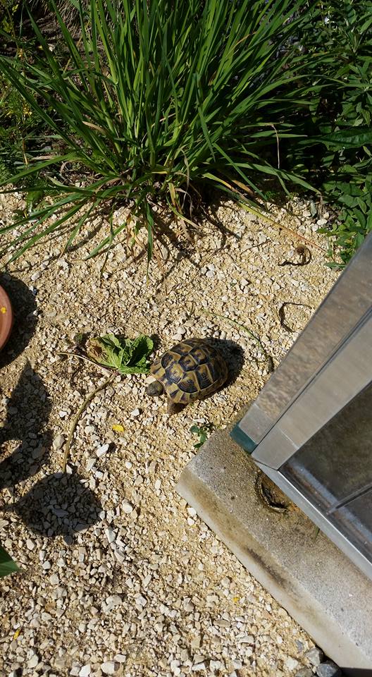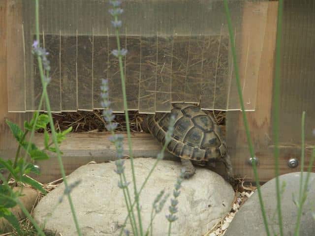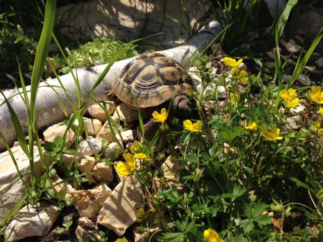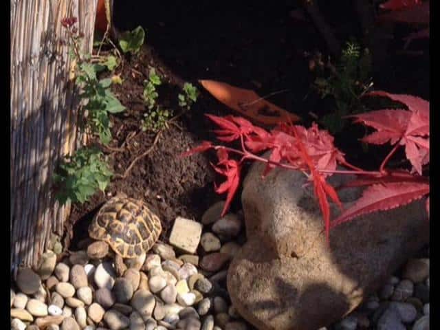 In diesem 25 qm großen Gehege leben momentan drei adulte Landschildkröten aus schlechter Terrarienhaltung. Sie wurden über 8 Jahre zusammen im Terrarium gehalten und hielten wohl nie eine Winterstarre.