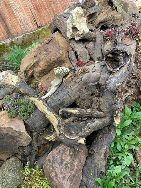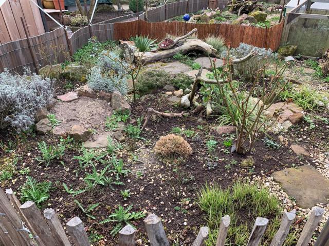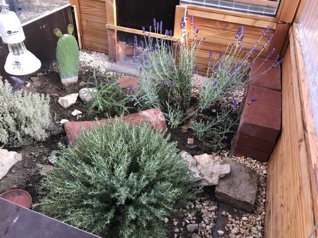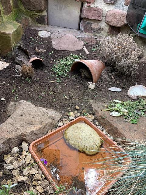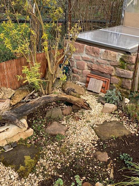 Für die Strukturierung des Geheges kann der Halter je nach Geschmack so ziemlich alles verwenden. Ich persönlich habe es lieber so natürlich wie möglich: