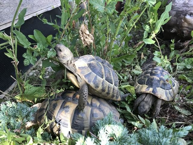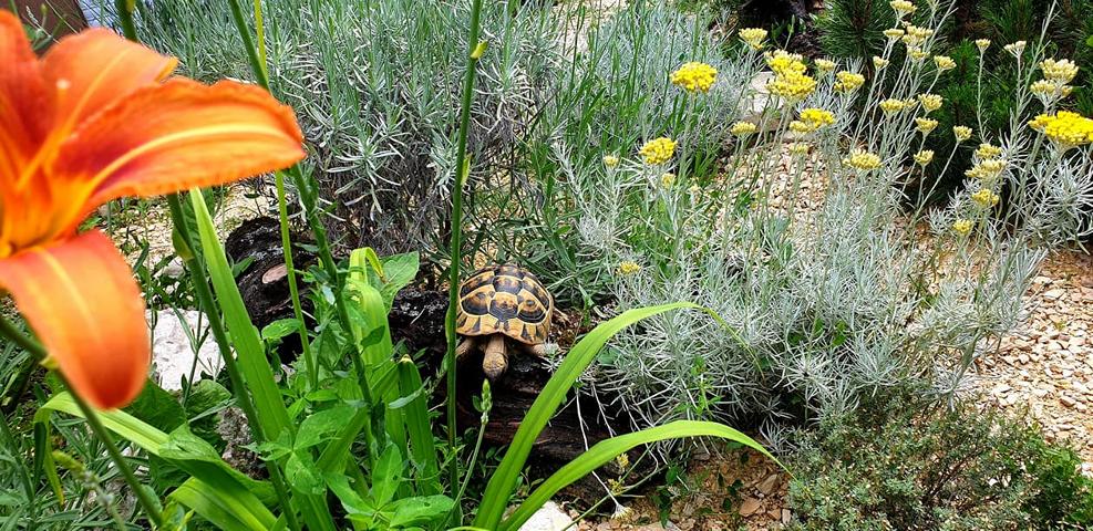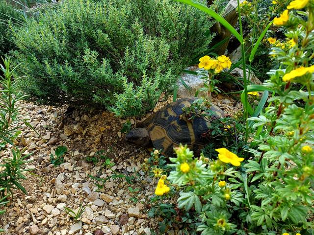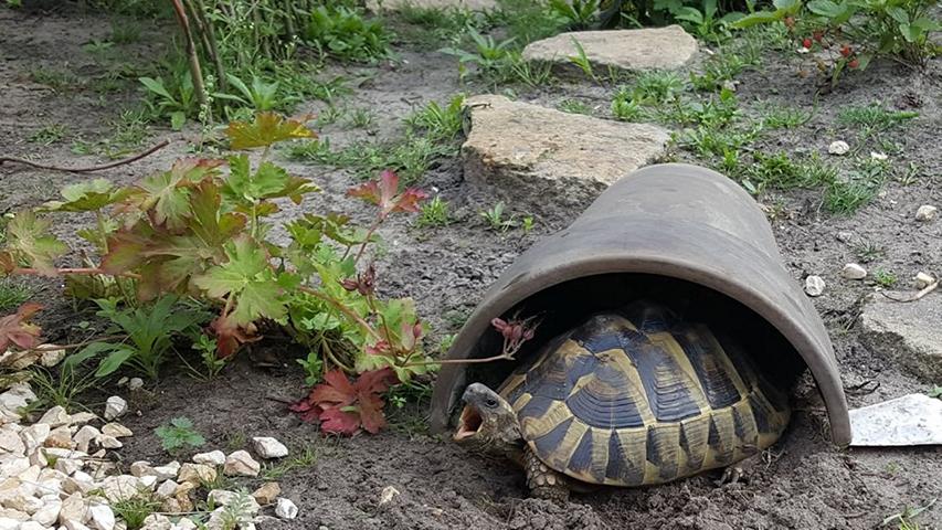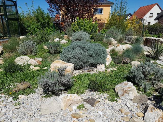 Äste, Steine bzw. Steinhaufen, Sträucher (Wie Lavendel, Rosmarin) und Büsche (Malven, Weigelie etc.) Doch leider sehen natürliche Habitate auch nicht mehr so aus, wie sie einmal waren. So liefen in Griechenland am Strand Testudo hermanni boettgeri zwischen angeschwemmten Plastikflaschen und sonstigem Müll umher.