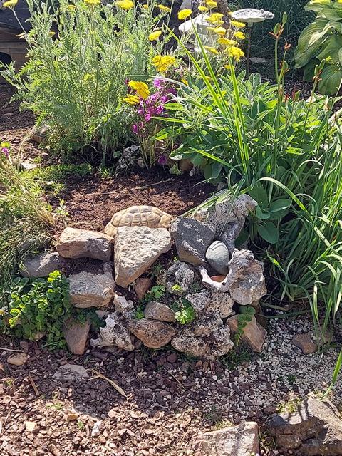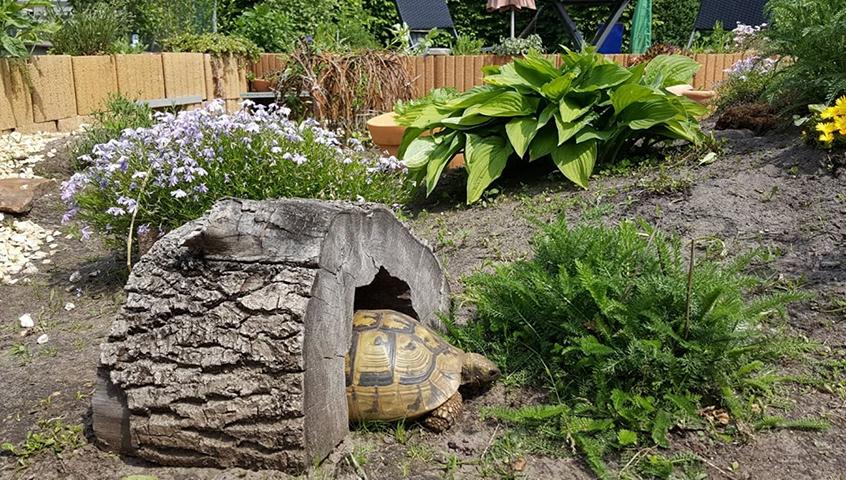Wie geschrieben, jeder so, wie er es möchte. Den Schildkröten ist es vollkommen egal, ob sie unter einem Baumstamm liegen oder Gartenzwerg. Hauptsache Schutz und Schatten.