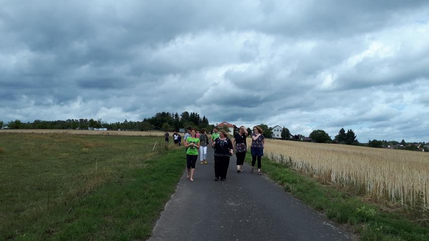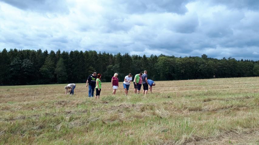 Wir fuhren also an diesem Samstag gegen 10 Uhr los (Andere hatten bereits den Tag davor das Wirtshaus von Alexandras Mutter beschlagnahmt) und erreichten nach einem kurzen Frühstückstopp gegen 12 Uhr das kleine Dorf im Spessart. Nachdem das obligatorische Umarmen dann endlich ein Ende fand, stand dann der erste Programmpunkt auf dem Plan: Kräuterwanderung mit der „Kräuterfee“ Rainer („Feen sind nach romanischer und keltischer Volkssage geisterhafte, mit höheren Kräften begabte Fabelwesen, die sowohl weiblich als auch männlich sein können“, Quelle: Wikipedia).