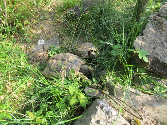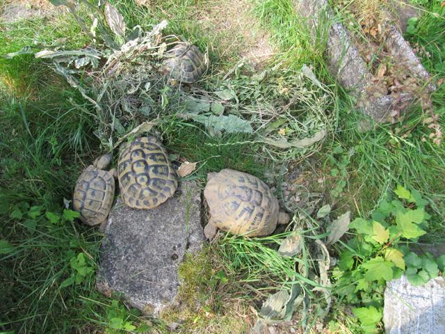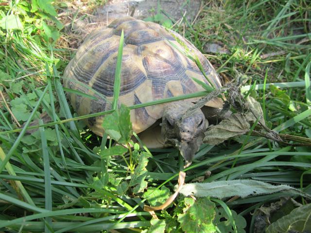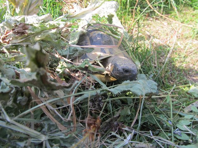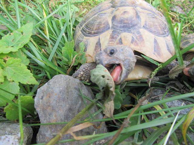 Wie ich schon beschrieben hatte, variiert das Nahrungsangebot der Griechischen Landschildkröten in ihrem Lebensraum erheblich. Während bei uns durchweg frisches Grün vorhanden ist, sieht es in vielen Habitaten anders aus. Frische und hochwertiges Grünfutter steht den Tieren schon im Frühjahr, wenn sie aus ihre Starre erwachen, reichlich zur Verfügung.