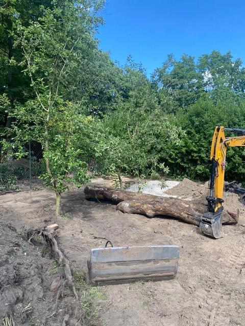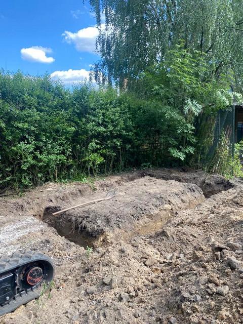 Als erstes kamen das Fundament fürs Gewächshaus und die Überwinterungsgrube dran, zum Glück mit Hilfe von einem Freund und einem Minibagger, der dann auch gleich etwas Bodenbearbeitung und das Fundament der Gehegebegrenzung vorbereiten konnte.