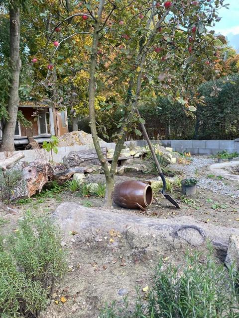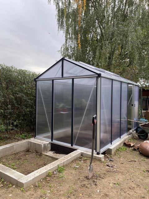 Und so ging die Zeit ins Land, die Abgrenzung war fertig, irgendwann stand das Gewächshaus, die Grube war fertig und wieder aufgefüllt. Schon allein das hat gefühlt Jahre gedauert, zumal ich die Erde durchsieben musste.