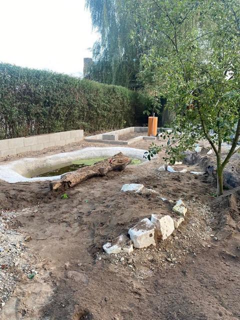Dass dies nur vorübergehend ist, war uns durchaus klar. Also begannen wir letzten Sommer mit dem Neubau. Zum Glück haben wir viel Platz und das neue Gehege entstand an komplett anderer Stelle in unserem Garten. So hatten wir Zeit zum Bauen und Gestalten, da die Kröten ja gut untergebracht waren.