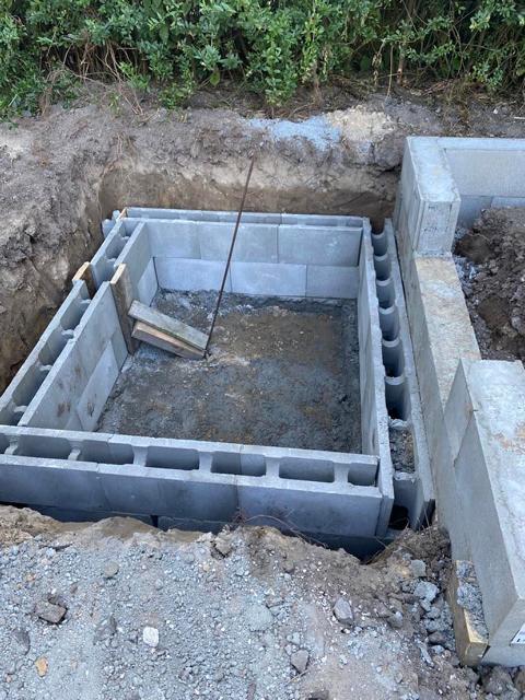 Wir haben die Steine auf ein kleines Fundament aus Kalkschotter gestellt und die Schalsteine auch mit dem Schotter verfüllt.