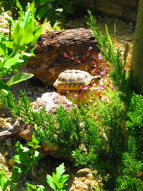So sollte in etwa unsere Gehege später mal aussehen. Büsche, Wurzeln und größere Steine als Verstecke bzw. um schattige Plätze aufzusuchen.