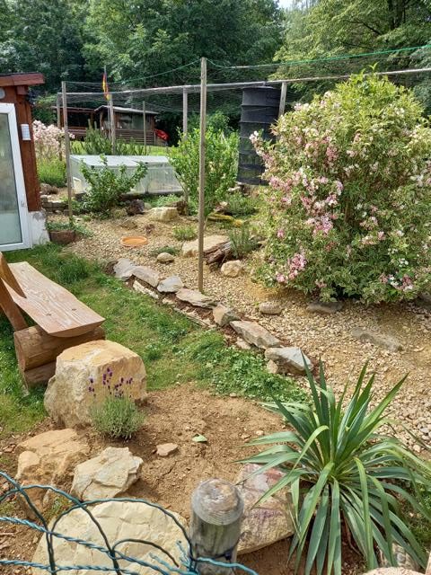 Wir müssen nur mal vereinzelt mal ein Tier ins sichere Frühbeet/Schildkrötenhaus bringen. Aber alle haben so ihren Stammplatz und sind nach kurzer Zeit gefunden…:-)