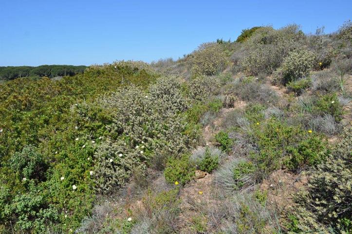 So wurde über die Zeit aus großen Wäldern, „Dank“ des Menschen ein dichtes, stellenweise undurchdringliches Gestrüpp von 3-5 m Höhe. Für den Mensch kaum zu bezwingen, für die Schildkröten ideale Versteckmöglichkeiten. Da durch das dichte Gestrüpp nur wenig Sonnenlicht den Boden erreicht, können Kräuter hier nicht so gedeihen. Folgende Pflanzen bestimmen die Maccia: Johannisbrotbaum, Kork und Steineiche, Kiefer, Dornginster, Dornige Bibernelle, Brombeere, Stecheiche.