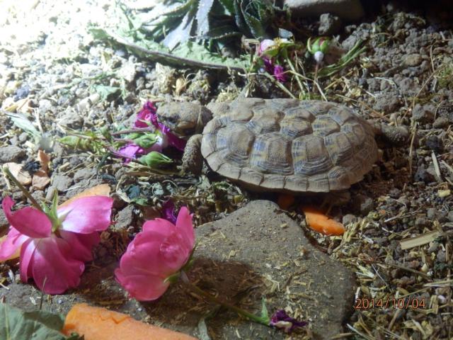 Bei der Ernährung mache ich keine Unterschiede zu unseren Griechischen Landschildkröten. Spaltenschildkröten sind ebenso reine Pflanzenfresser und bekommen dieselben Wildkräuter und Blüten. In den Trockenmonaten füttere ich auch Kräuterheu und Agrobs bzw. ich biete es den Schildkröten an. Jedoch wird es nicht immer angenommen. Als Kalziumquelle liegen Sepiaschulp* und Algenkalk bereit.