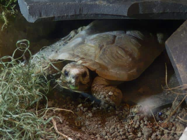 Es sollte aber so groß sein, damit eine kleine Felsenlandschaft gestaltet werden kann. Die Spaltenschildkröten verbringen zwar viel Zeit in und um ihre Spalten, klettern aber auch sehr gerne.