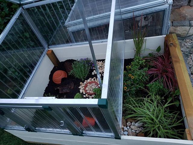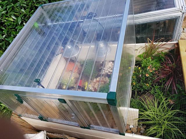 So hat man jetzt die Möglichkeit die Tiere ins Freie und Abends zurück ins Frühbeet bzw. Gewächshaus zu setzen ohne sie aus ihrer vertrauten Umgebung zu nehmen.