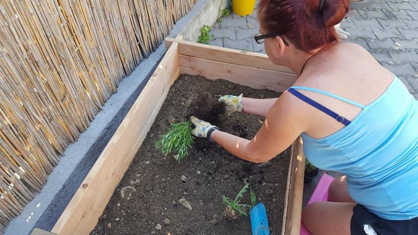 Auch unsere Nelli hat 2 Wochen nach der Eiablage unserer Susi in die Nähe des Lavendelstrauches ihre Eier gelegt. Auch sie hatte vorher an dem eigentlich dafür vorgesehen Legehügel Probegrabungen durchgeführt, aber wohl nicht für geeignet angesehen. Nachdem nun der ideale Platz gefunden wurde, beginnt das Tier mit den Hinterbeinen eine kleine Grube von 10-15 cm Tiefe auszuheben.