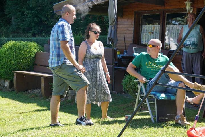 Freddy beim Anheizen des Backofens für den Flammkuchen und Schwiegervater Franz beim Grillen der Bratwürste