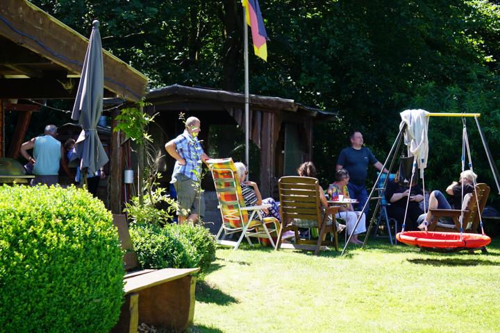 Mein Schwiegervater stand an der Grillstation und es gab leckeren Schwenker, Brat- und Mettwurst und dazu allerlei verschiedene Salate. Freddy schmiss den Ofen an und zauberte Flammkuchen auf den Tisch.