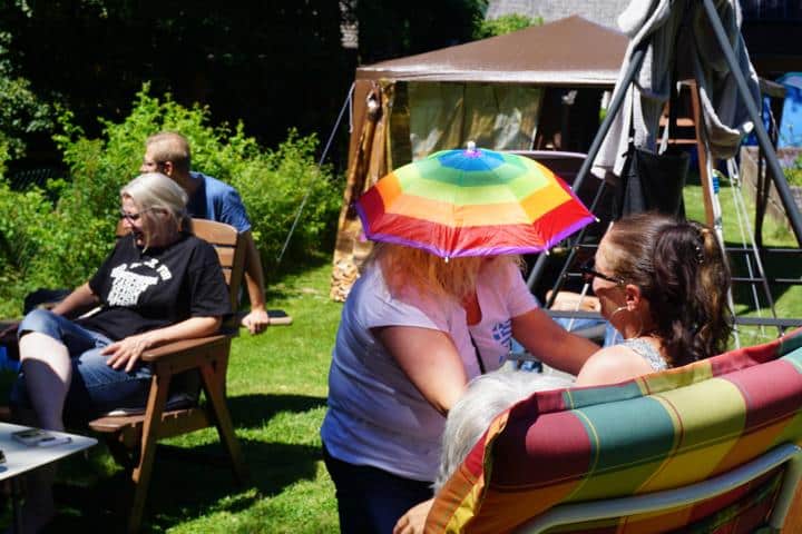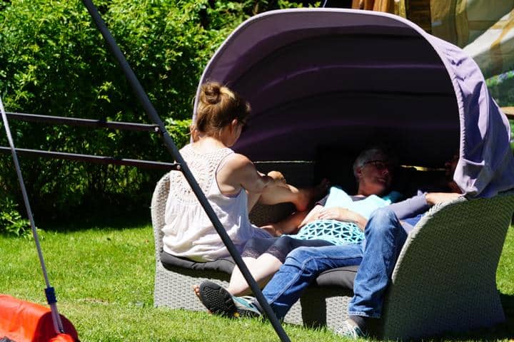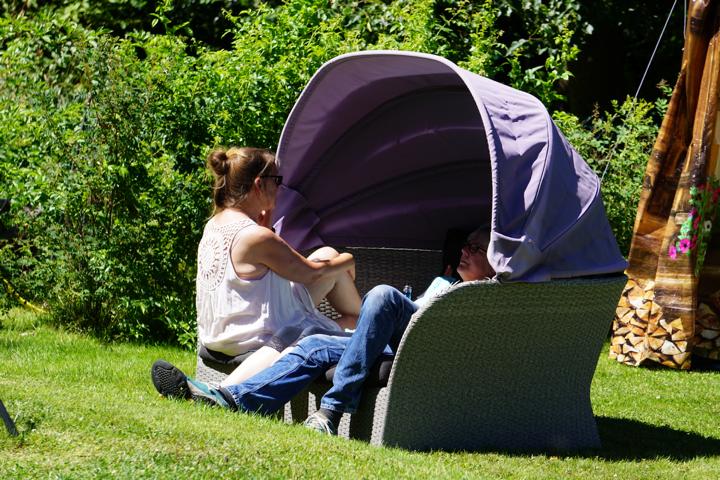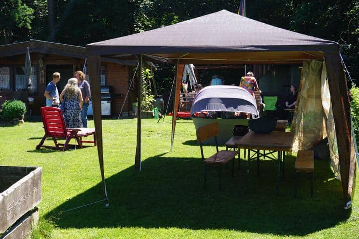 Mein Schwager Freddy (der Tausendsassa) war gleich früh morgens da und wir bauten den Pavillon auf. Sicher ist sicher, doch der Wettergott hatte es an diesem Wochenende gut mit uns gemeint und verwöhnte uns durchgehend mit dem herrlichsten Wetter.