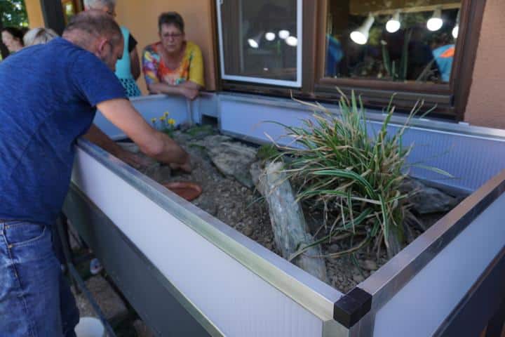 An diesem Tag stand aber erstmal die Einrichtung an. Eigentlich war es so geplant, dass jeder der möchte, sich mit Ideen und Vorschlägen einbringen kann. Mit Axel war aber ein ausgewiesener Experte vor Ort, der sich mit dem Lebensraum in Tansania und mit der Schildkrötenart bestens auskennt.