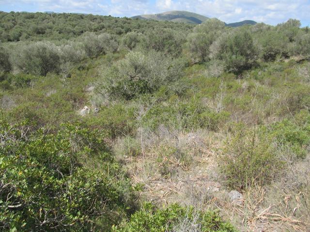 Niedrige, verschiedene Sträucher beherrschten dieses Habitat. Diese sogenannte Garrigue entsteht durch intensive Beweidung der Macchia. Und tatsächlich: Schafe rannten hier überall frei um. Auf der einen Seite natürlich schön auf der anderen Seite gab es dann einem doch zu denken, da diese Tiere ja auch Futterpflanzen der Landschildkröten fressen. Dadurch geht natürlich auch die Artenvielfalt verloren und für Schildkröten bleibt dann meist nur das übrig, was für die Schafe zu klein oder nicht schmackhaft ist.
