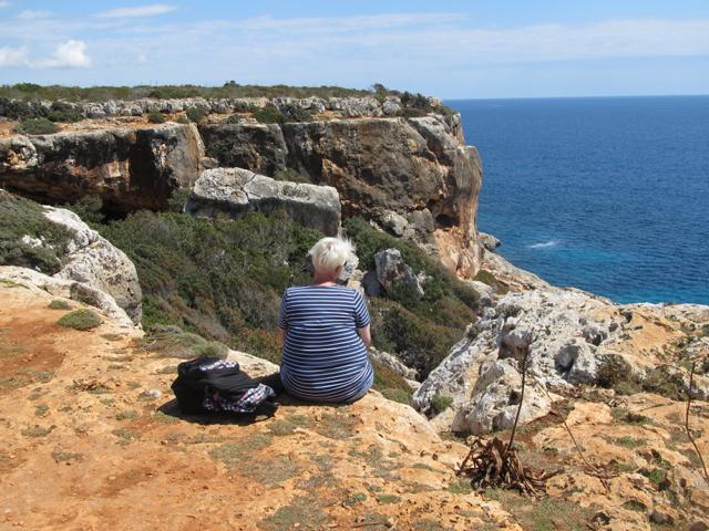 Also gingen wir wieder zu unserem Ausgangspunkt und kletterten über die Steinmauer um auf den Weg zu gelangen. Diese Trockenmauern, die überall auf Mallorca zu finden sind, finde ich toll. Als natürliche Einfriedung für Naturschutzgebiete, Fincas, Bauernhöfe und Häuser bieten sie Schutz vor Überschwemmungen und sind ein wunderschöner Blickfang für Touristen. In der Mauer wurden Durchlässe eingelassen, damit bei Überschwemmungen das Wasser abfließen kann. Diese Durchlässe werden aber auch gerne von Schildkröten genutzt.