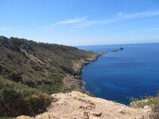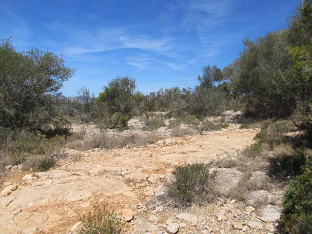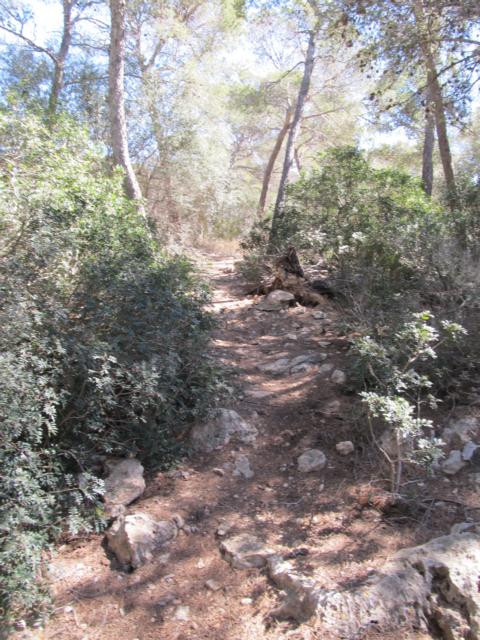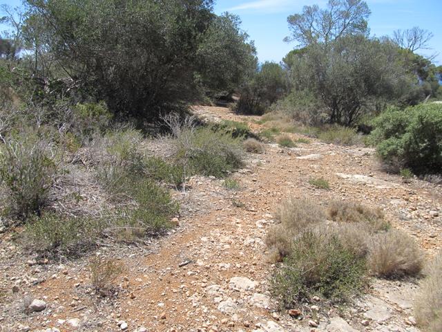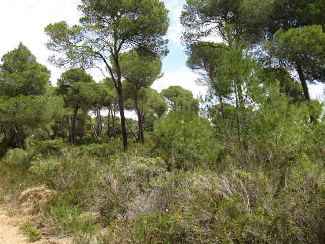 Wir parkten also an einer Seitenstraße und gingen nur wenige Meter, um in den Naturpark zu gelangen. Im Gegensatz zum Habitat an der Ostküste mit Macchie und Garigue waren wir hier mitten in einem Waldgebiet. Aleppo-Kiefer, Steineiche und verschiedene Sträucher säumten unseren Weg. Die Temperaturen waren an dem späten morgen schon über die 20 Grad -Marke geklettert, doch im Wald war es noch angenehm kühl. Aber wie an der Ostküste war vieles schon trocken und verdorrt (Wie ich dann später erfahren hatte, war es zu dieser Jahreszeit auf Mallorca schon ungewöhnlich trocken) Wir machten uns aber trotz allem berechtigte Hoffnungen auch maurische Landschildkröten zu finden.Wir schlugen uns also bis zur Landzunge durch, machten aber immer mal wieder Pause um diese wunderbare Landschaft zu bewundern. Doch an diesem Tage blieb es nur bei der Hoffnung!