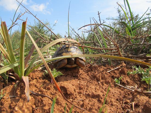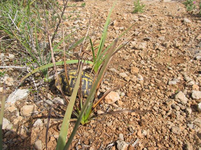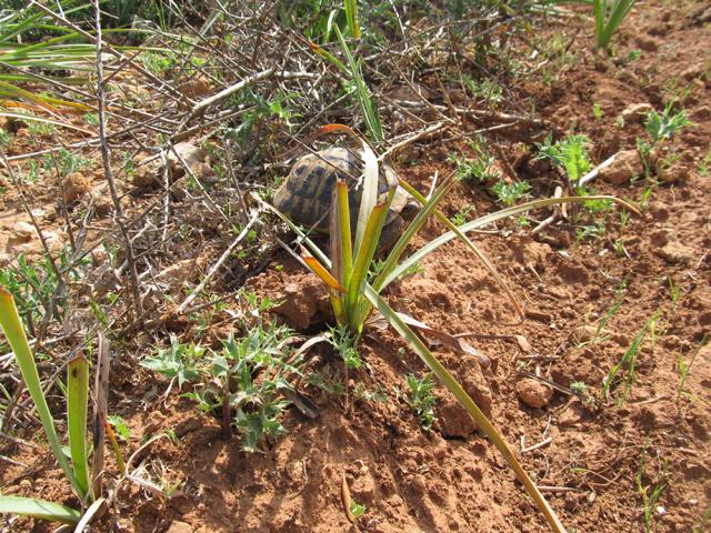 Wir fanden außer Schildkrötenkot und angeknabberter Meerzwiebel! (siehe Teil 1) leider keine Landschildkröten. Doch um nicht ganz ohne Bilder von maurischen Landschildkröten zu sein, hat uns unser Schildkrötenfreund Thorsten Geier (von ihm hatten wir diesen Tipp) ein paar Bilder von maurischen Landschildkröten in diesem Gebiet zur Verfügung gestellt.