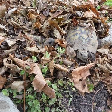 Laub aus dem Wald holen und über die Schildkröten schütten.