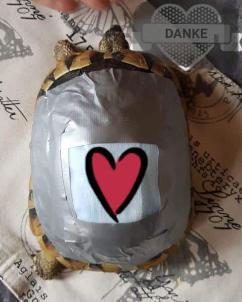 Ich wurde auf Gertrud aufmerksam, weil eine Freundin und Unterstützerin des Schildkröten-Spenden-Flohmarktes mich anschrieb und mich fragte, ob dieses schwer verletzte Tier nicht ein Fall für eine finanzielle Unterstützung seitens des Spenden-Flohmarktes wäre. Ich war gerade auf Schildkröten Tagung, schaute nur kurz aufs Handy und war erschrocken von dem Bild. Ich glaube, meine erste Antwort war: „Lebt das Tier?“.