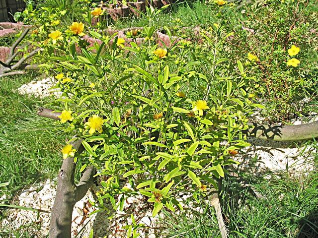 Zwerg-Johanniskraut Hypericum olympicum, Wuchshöhe: 30 – 40 cm, laubabwerfend, für Baby- und Jungtiergehege.
