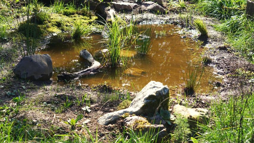 Das fertige Projekt fügt sich sehr schön in das Gehege (Und Garten!) ein und alleine, dass es jetzt schon für viele Lebewesen eine Anlaufstelle oder Lebensraum (z.B. Wasserkäfer) geworden ist, war die Mühe schon wert. Die eine oder andere Schildkröte hat sich schon ans neue Gewässer herangewagt, aber ich denke, wenn sie ab dem Frühjahr damit richtig in Kontakt kommen, werden sich alle damit beschäftigen.😆 Natürlich werde ich das neue Biotop beobachten und verschiedene Tests durchführen, wie die Belastung etc. dann bei „intensiven“ Gebrauch ist und ob eventuell nachjustiert werden muss.