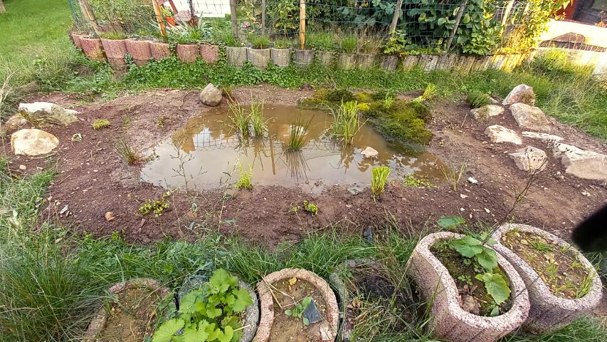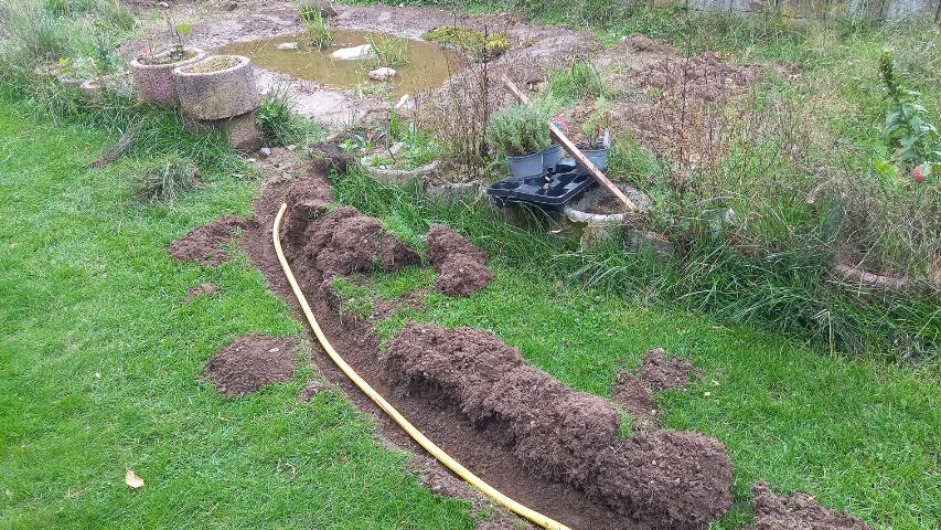 Genauso stellte ich mir eine natürliche Wasser/-Badestelle vor. Also befasste ich mich intensiver mit Thema, las die Berichte und Erfahrungen von Klaus und googelte auch das eine oder andere im Netz. Ein stabiles Ökosystem mit vorhandener Bepflanzung und Bakterienkultur sollte für eine gute Wasserqualität sorgen, auch wenn die Tiere mal ins Wasser ihr Geschäft verrichten. Nachdem nun Sabrina und Gabi ebenso ein Wasserbiotop angelegt und nur positives berichtet hatten, begannen die Planungen.