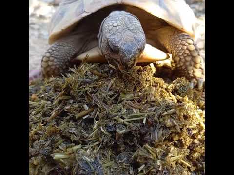 Inspiriert durch den natürlichen Lebensraum hatte ich im Frühjahr unsere Gehege mit Kalkschotter umgestaltet (Teil 1 und Teil 2). Das Futterangebot hatte ich aber schon vor Jahren umgestellt und versucht das Habitat zu imitieren. Das heißt, im Frühling gibt es frische Wildkräuter, während im Sommer selbst getrocknete Kräuter im Wechsel mit Agrobs angeboten werden. Im Herbst wird dann wieder vermehrt mit knackigen Wildkräutern gefüttert.
